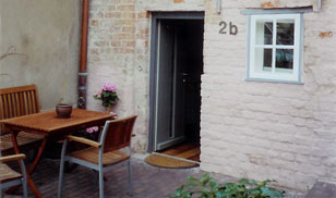 Ein seperates Häuschen auf drei Ebenen. Küche, Wohnzimmer mit Schlafcouch, Schlafzimmer mit Doppelbett, Duschbad, alter Dielenfußboden